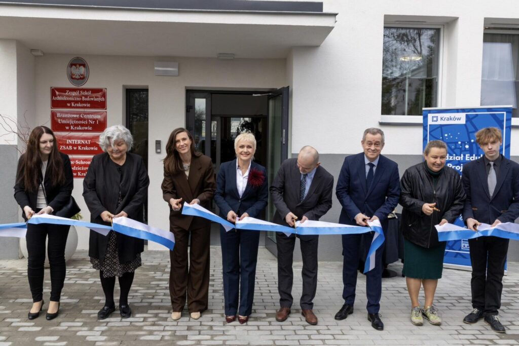 Dzięki inwestycji o wartości 12 mln zł, z czego 10 mln zł sfinansowano ze środków Krajowego Planu Odbudowy, a 2 mln zł ze środków gminy Kraków, przy Zespole Szkół Architektoniczno-Budowlanych powstały nowoczesne, zaawansowane technologicznie pracownie. To właśnie w nich uczniowie, studenci, doktoranci oraz osoby dorosłe będą zdobywać kwalifikacje zawodowe szczególnie poszukiwane na rynku pracy, w tym poznawać najnowsze techniki renowacji zabytków i mebli.