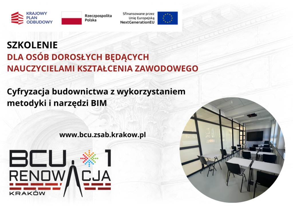 | Wymagania wstępne dla kandydatów | • Status nauczyciela kształcenia zawodowego • Podstawowa znajomość obsługi komputera, w tym programów ze środowiska Windows • Ogólna znajomość procesów budowlanych lub dokumentacji technicznej • Mile widziane doświadczenie w obsłudze programów projektowych (niewymagane) • Chęć do nauki i zainteresowanie nowymi technologiami• Umiejętność pracy w grupie ze względu na zespołowy charakter części praktycznej |